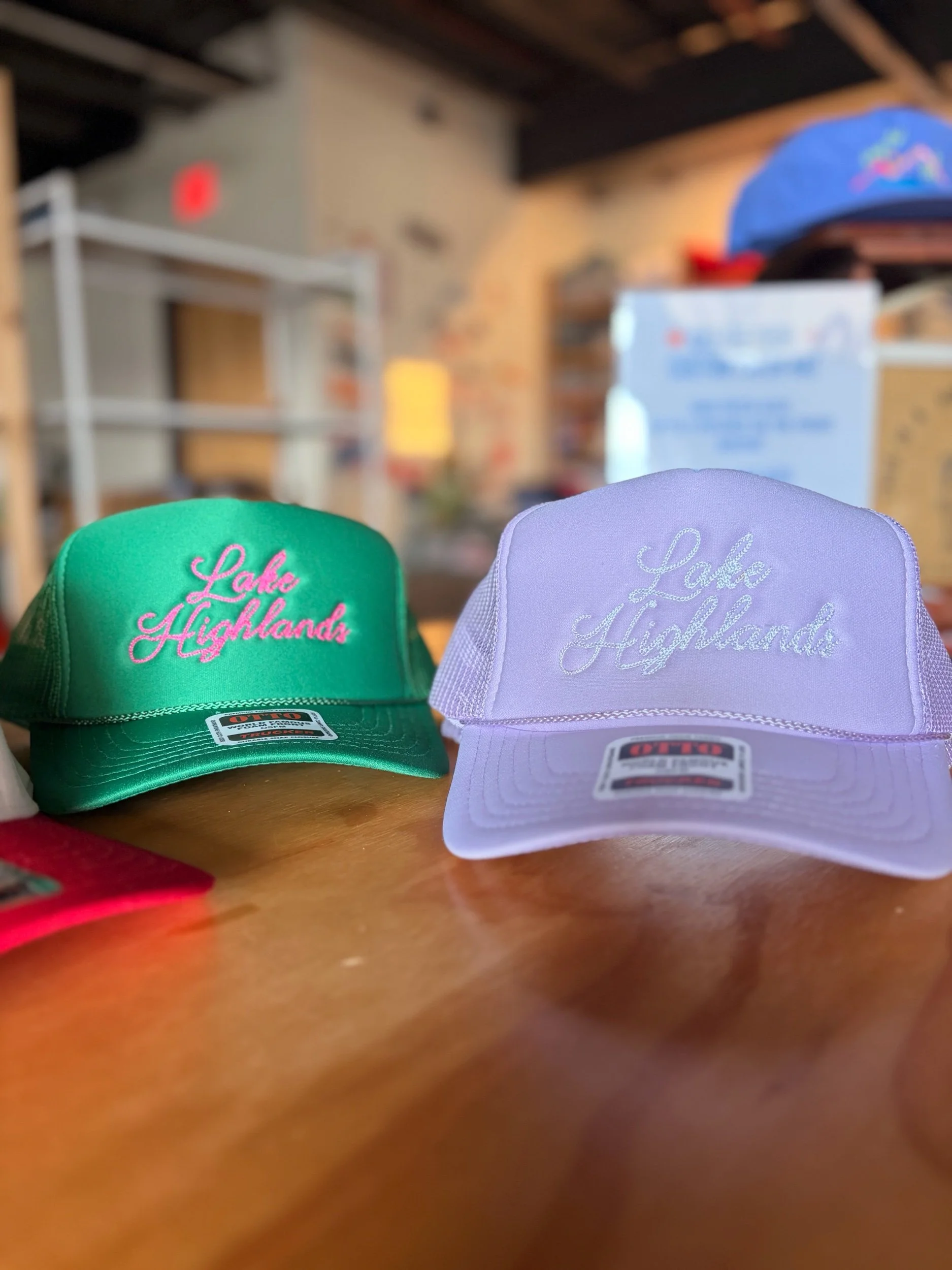 Image 1 of 2 Image 2 of 2 Lake Highlands Chainstitch Hats $28.00 Lake Highlands chainstitch embroidered hats Color: Lavender Green Purchase Added! Lake Highlands chainstitch embroidered hats